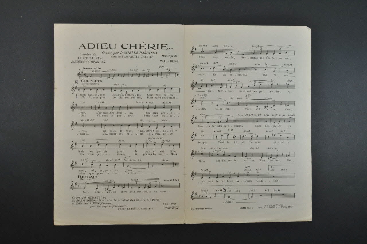 chanson, petit format, partition de musique, Adieu chérie