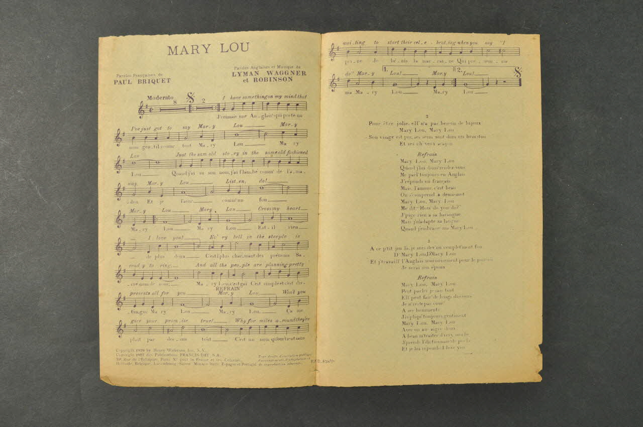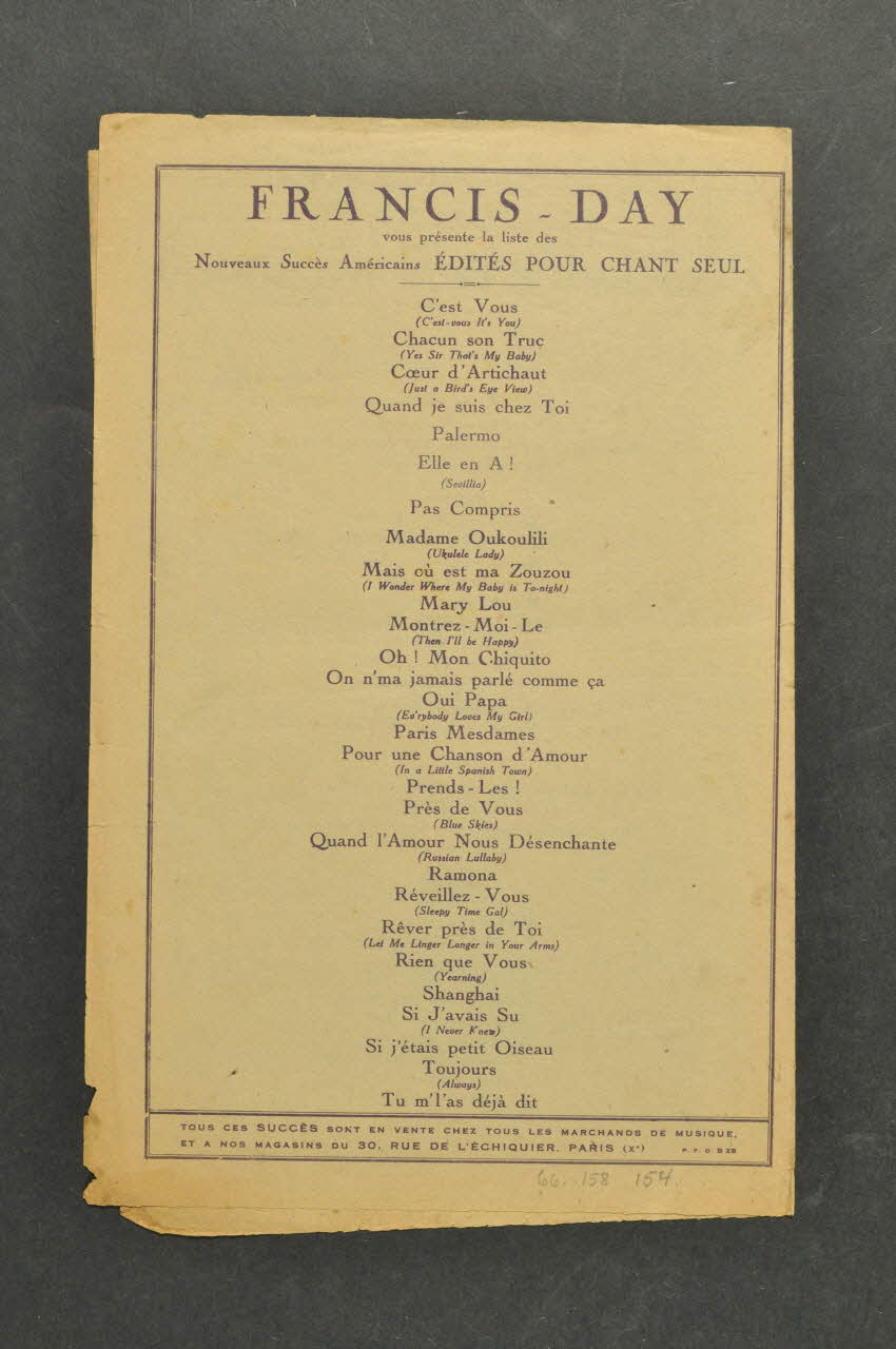 De : Lieu : Paris, Île-de-France, FranceDate : 1926paroles anglaises / paroles italiennes