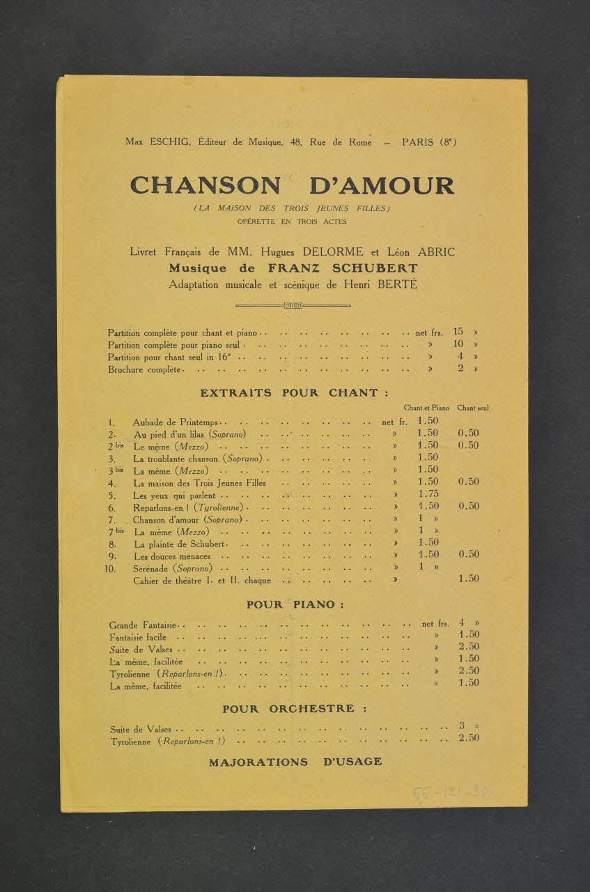 chanson, partition de musique, petit format, Chanson d'amour, La maison des trois jeunes filles