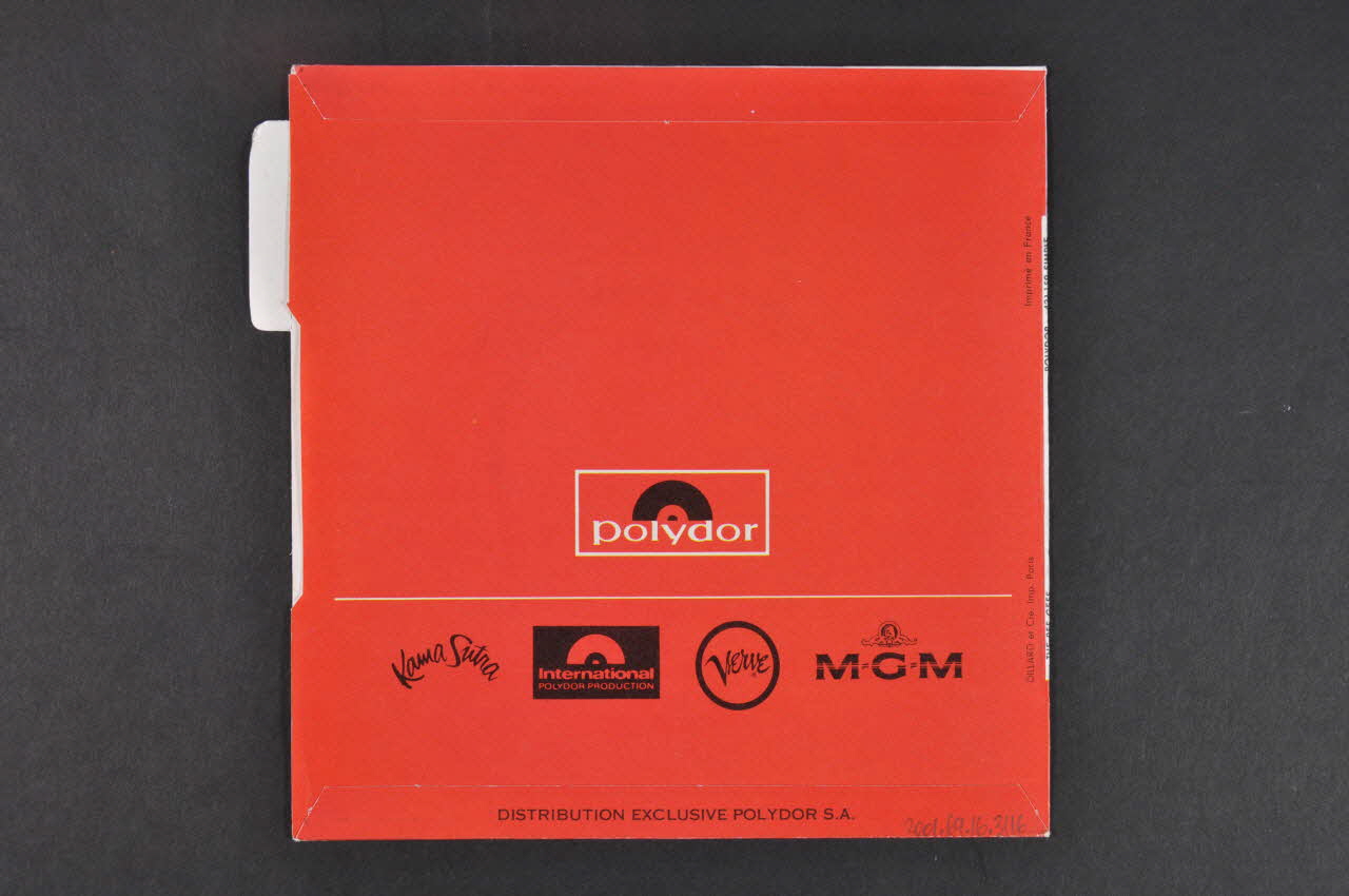 Au recto, le fond est blanc avec une photo, en noir et blanc, de quatre jeunes hommes. En haut, se trouve un titre en grandes lettres vertes, en dessous une inscription en noir. L'ensemble est encadré d'une bordure violette, rouge, orange et jaune.