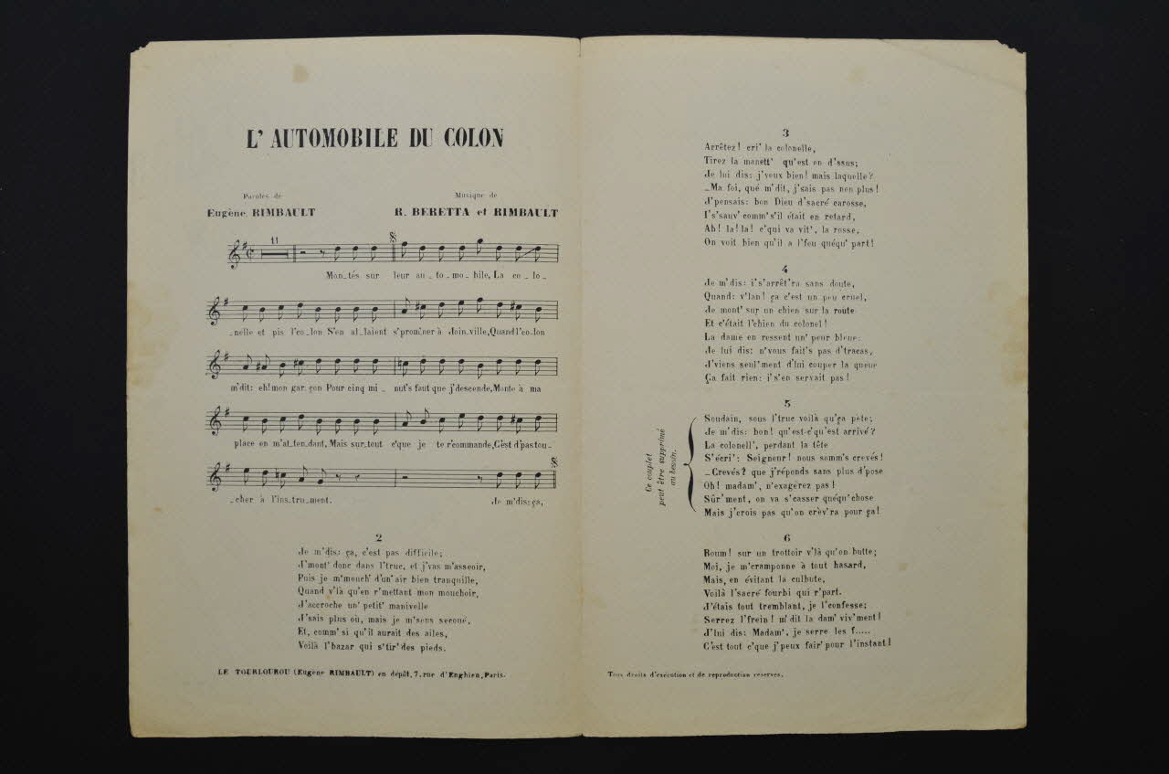 chanson, partition de musique, petit format, L'automobile du colon