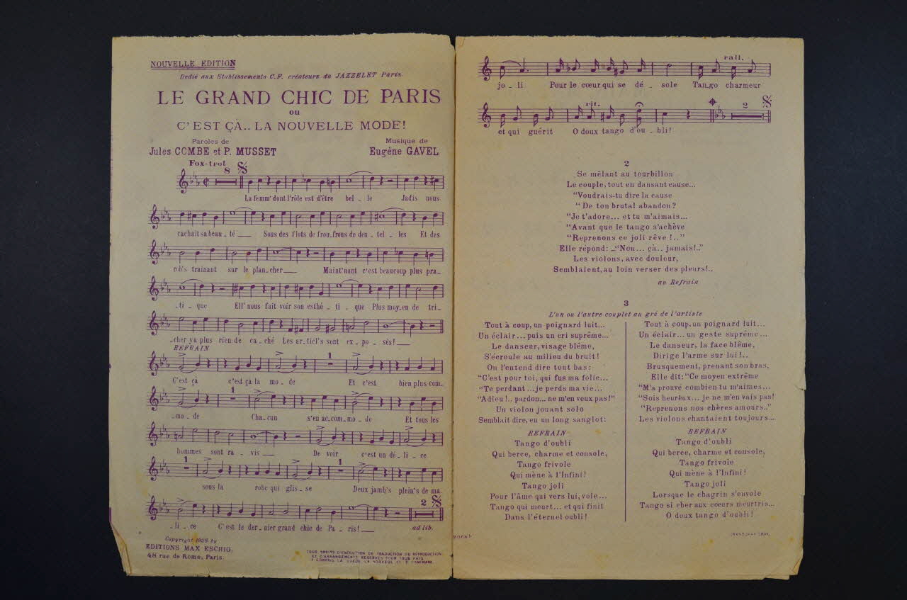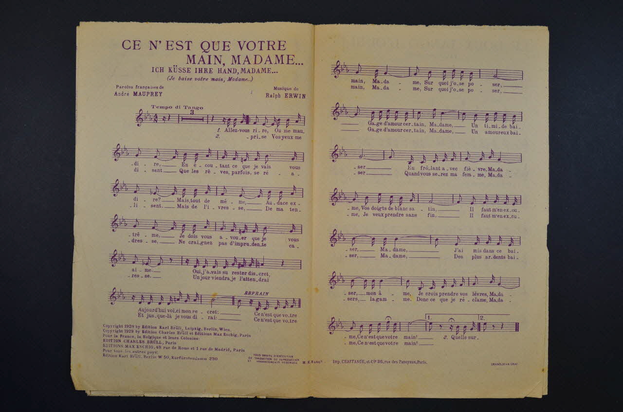 chanson, partition de musique, petit format, Le doux tango d'oubli, Ce n'est que votre main, Madame..., Le grand chic de Paris ou C'est ça... la nouvelle mode!
