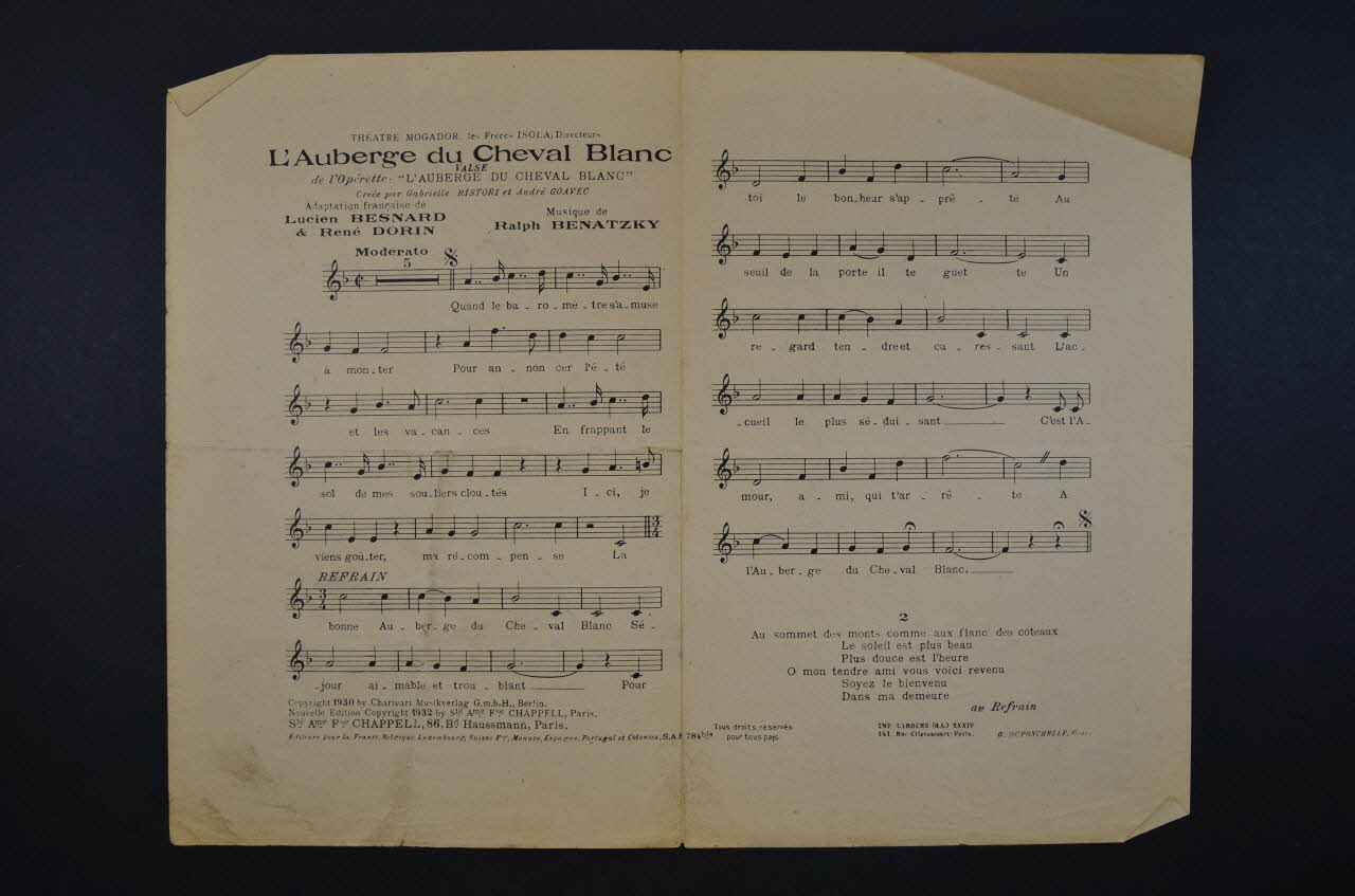 chanson, partition de musique, petit format, L'Auberge du Cheval blanc