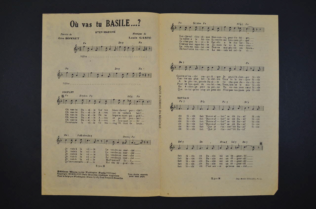 chanson, partition de musique, petit format, Où vas-tu Basile