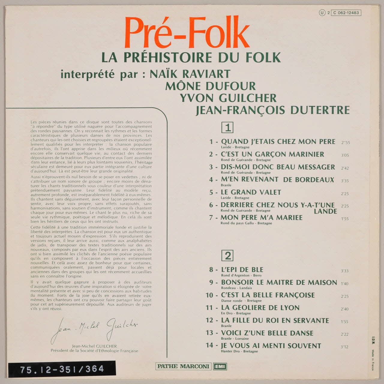 Numéro d'inventaire : MUS1975.12.351-364Description