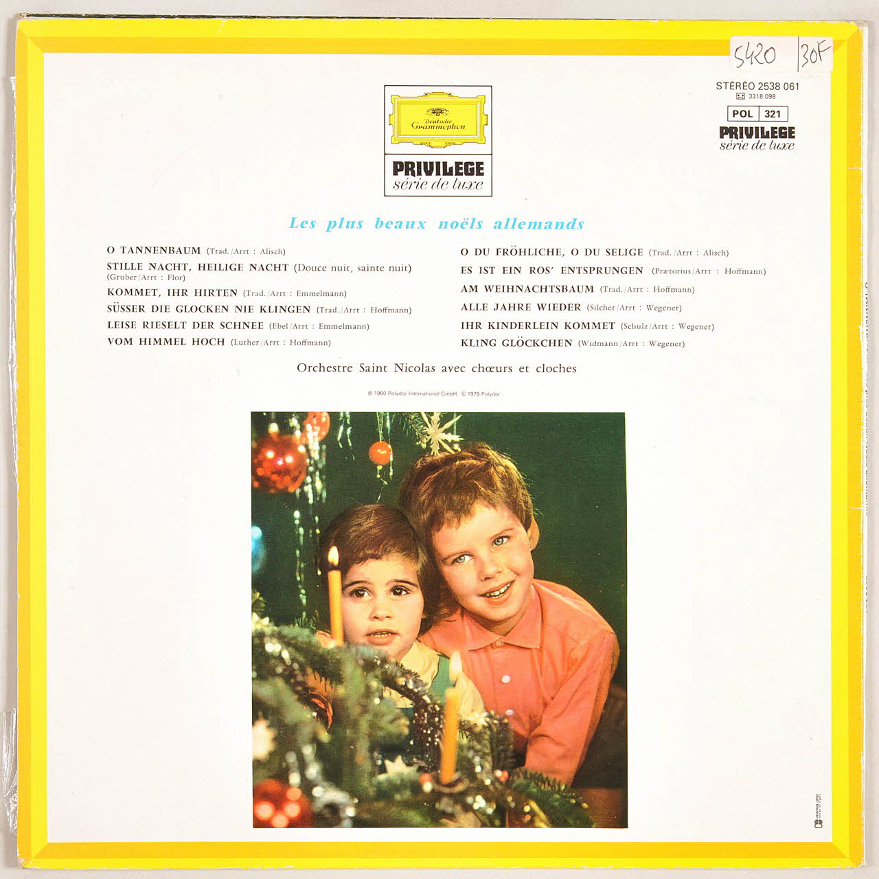 disque 33 tours, Süsser die Glochen nie klingen, Am Weihnachtsbaum, O Tannenbaum !, Leise rieselt der Schnee, O du fröhliche, Les plus beaux Noëls allemands., Alle Jahre wieder, Kling Glöckchen, Von himmel hoch, Stille nacht, heilige nacht, Ihr kinderlein kommet, Es ist ros' Entsprungen, Kommet, ihr hirten