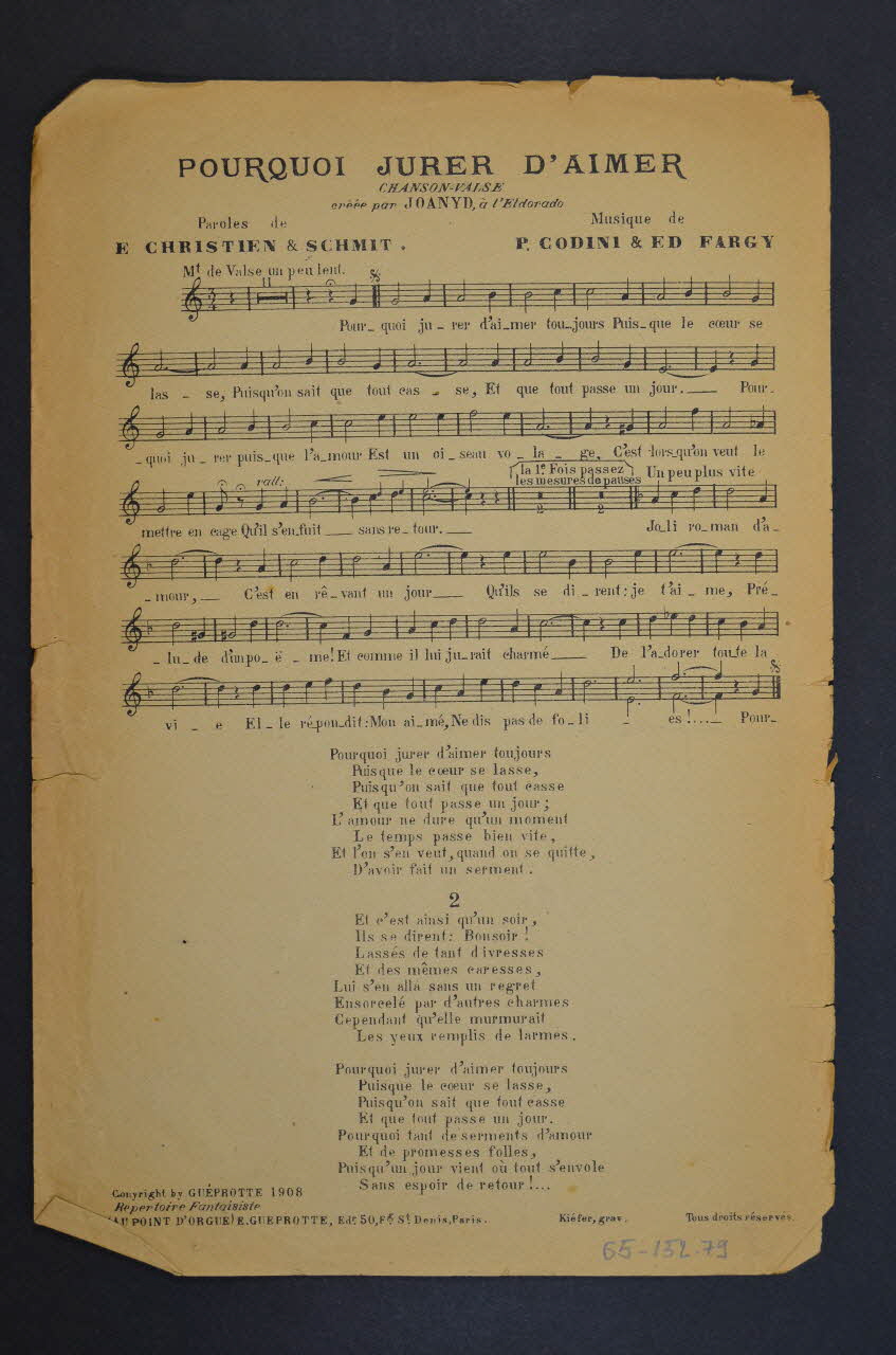 chanson, petit format, partition de musique, Pourquoi jurer d'aimer