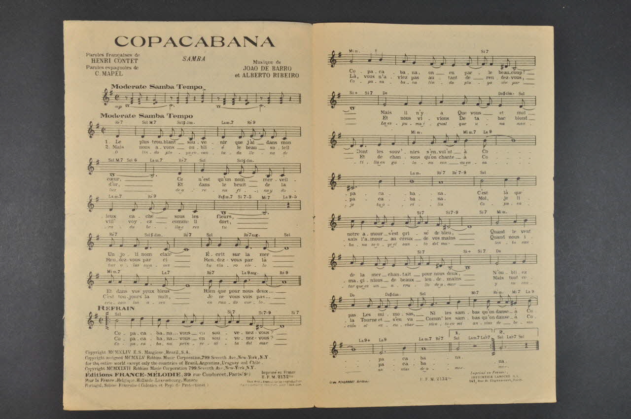 chanson, partition de musique, petit format, Copacabana