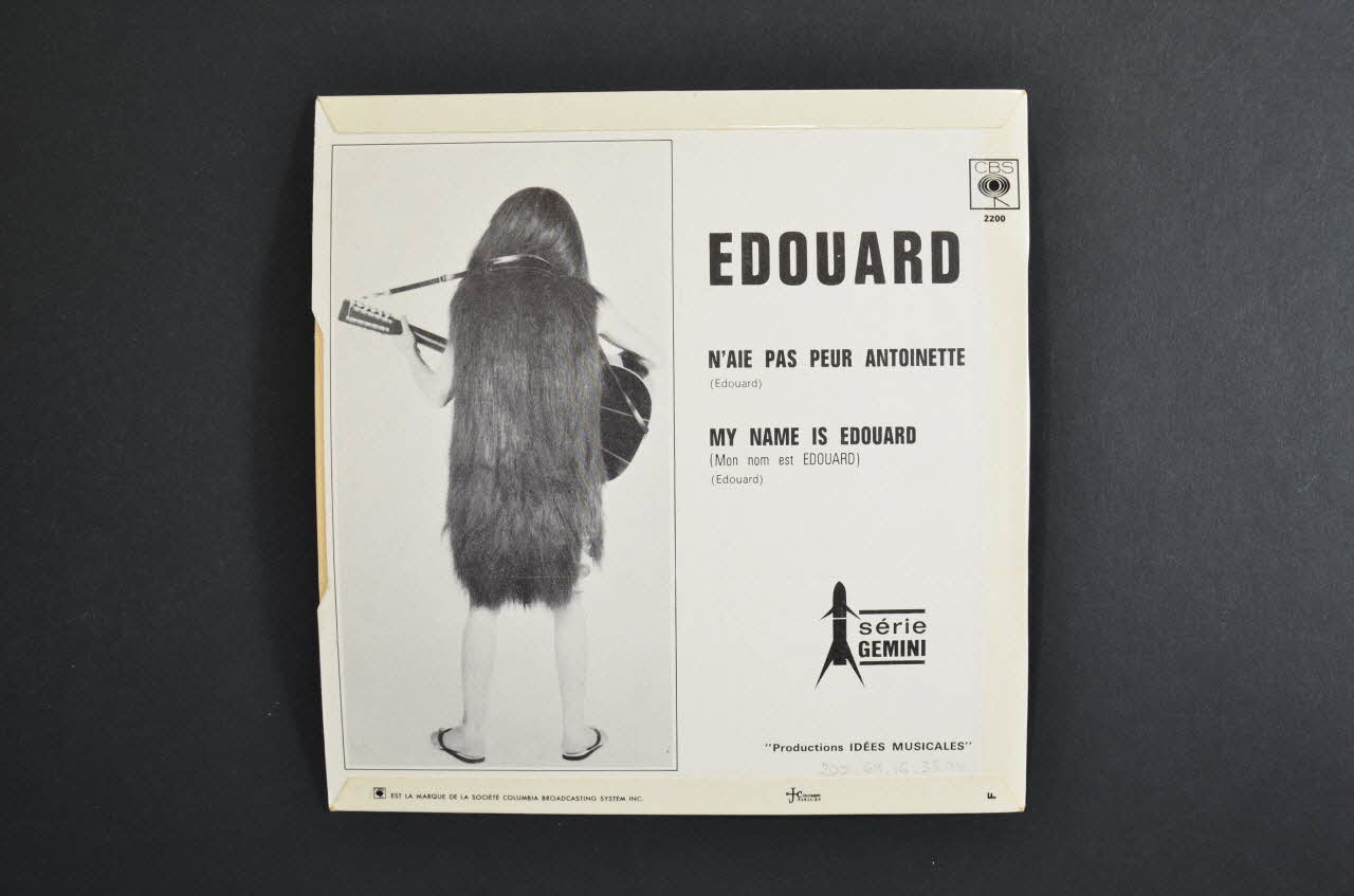 A l'arrière à droite figurent, en noir sur fond blanc, le nom du chanteur et les titres. Sur la partie gauche se trouve une photographie noir et blanc du chanteur, dans la même pose qu'à l'avant mais vu de dos.