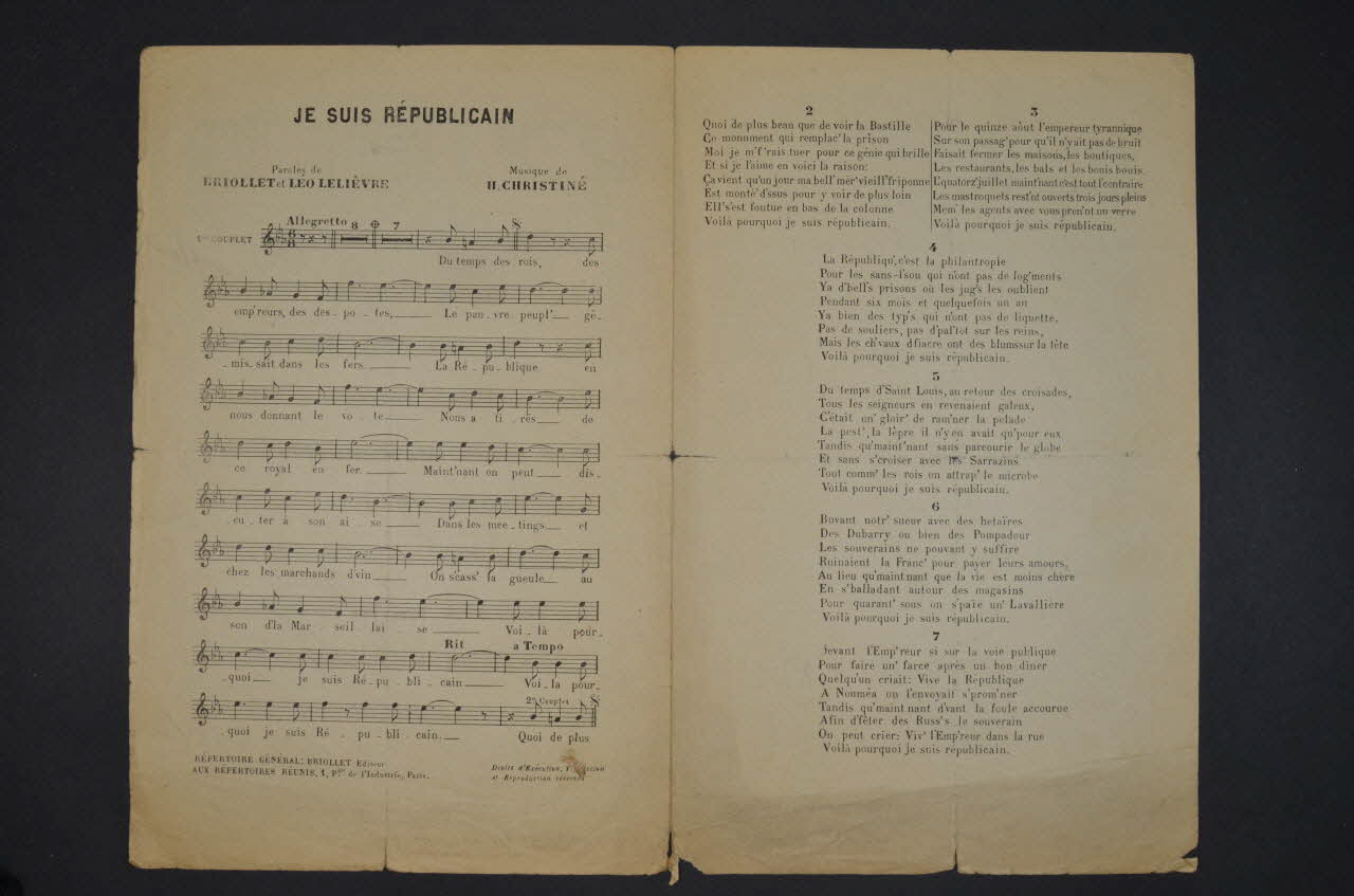 chanson, petit format, partition de musique, Je suis républicain