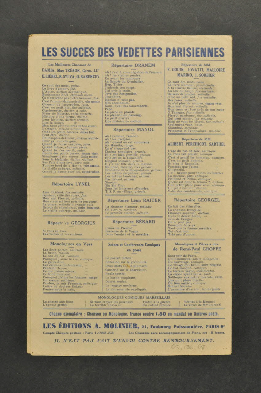 Succès de Fred Gouin, créé à l'Empire par Lina Tyber.