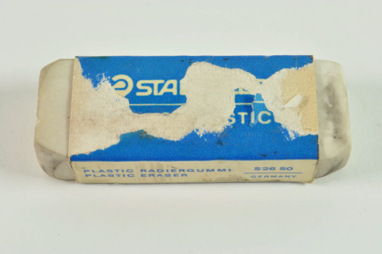 STAEDTLER // MARS-PLASTIC (En blanc sur fond bleu.), sur une faceInscription, imprimé, Inscript concernant le lieu d'exécution
