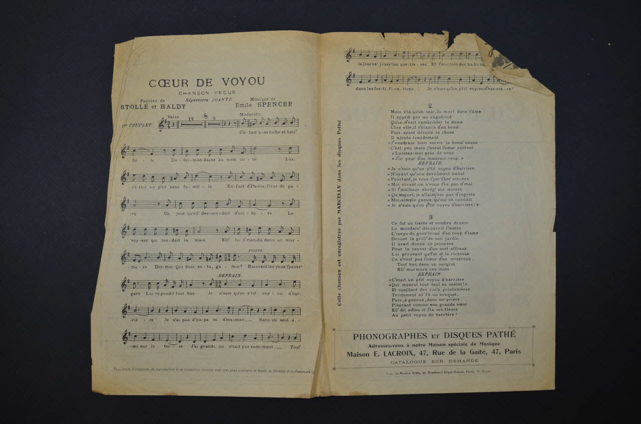 chanson, partition de musique, petit format, Coeur de voyou