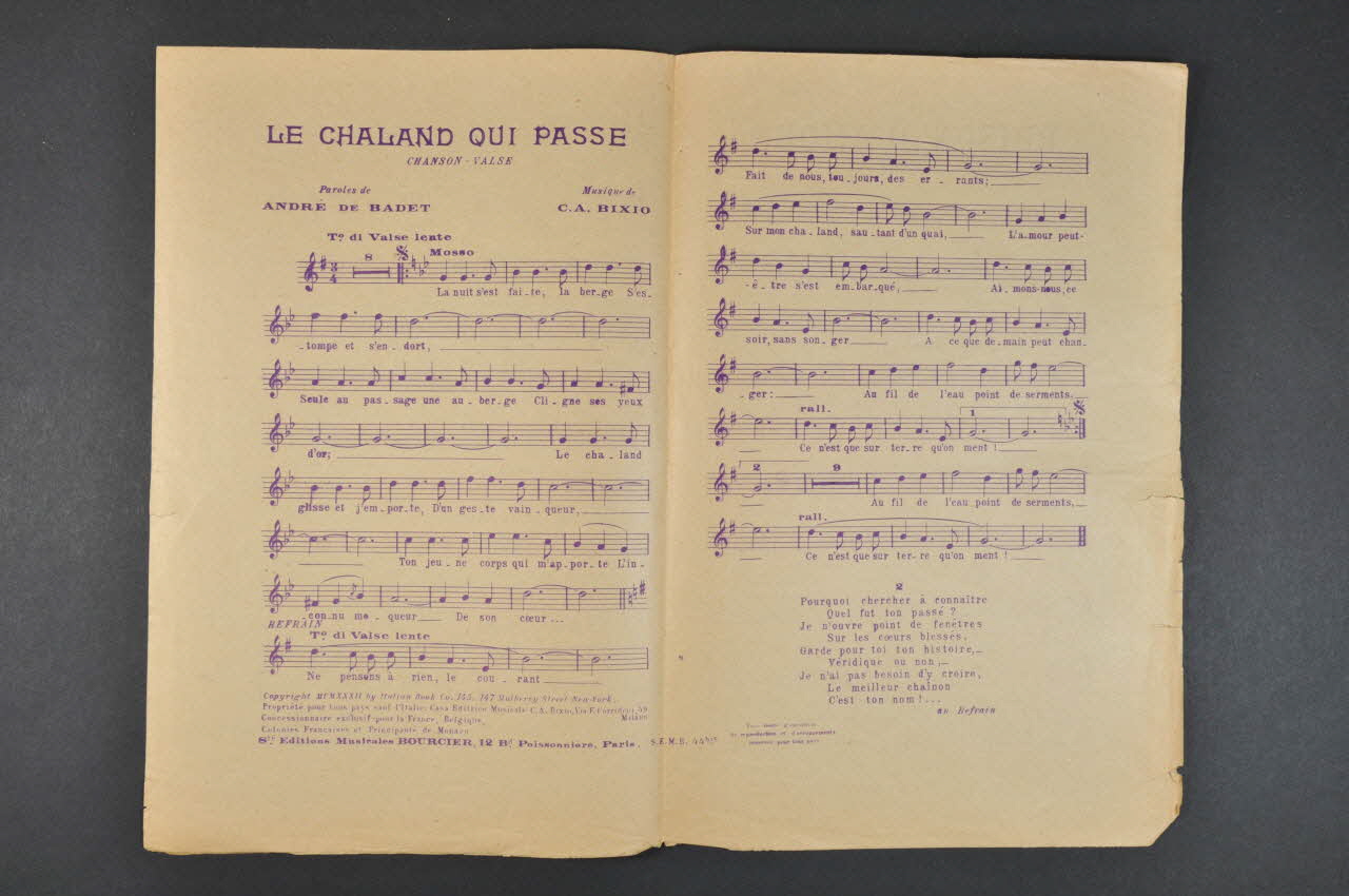 chanson, partition de musique, petit format, Le chaland qui passe