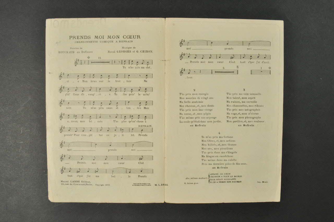 chanson, partition de musique, petit format, Prends moi mon coeur