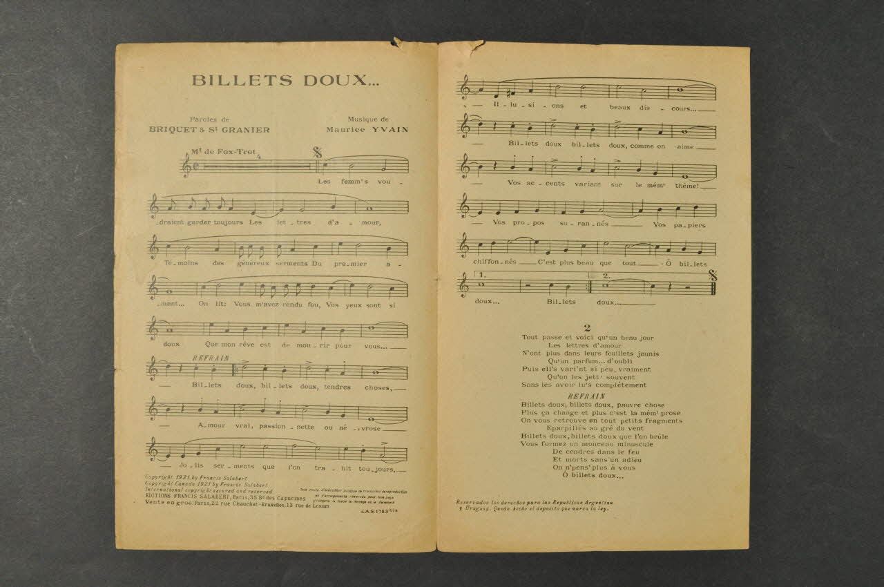 chanson, partition de musique, petit format, Billets doux