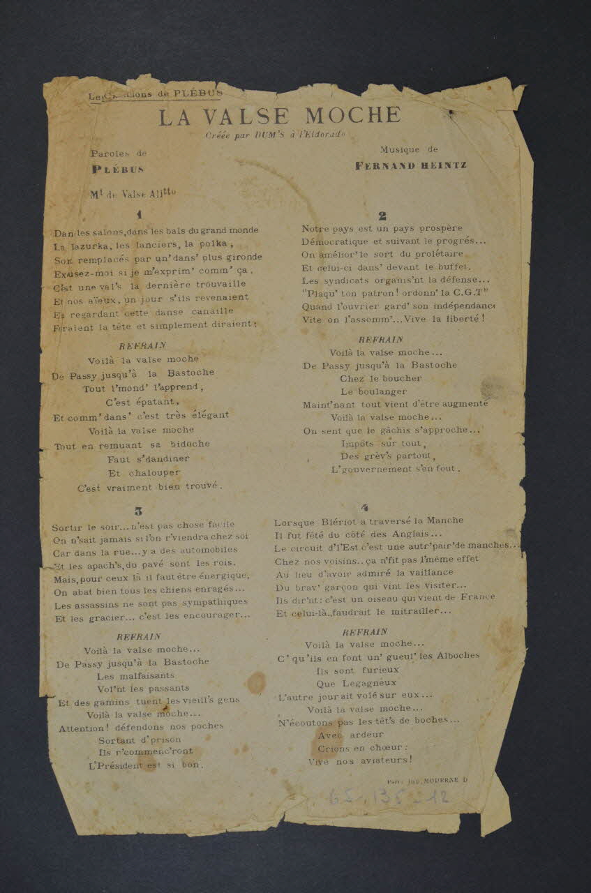 Chansonnette comique créée par Dum's à l'Eldorado.