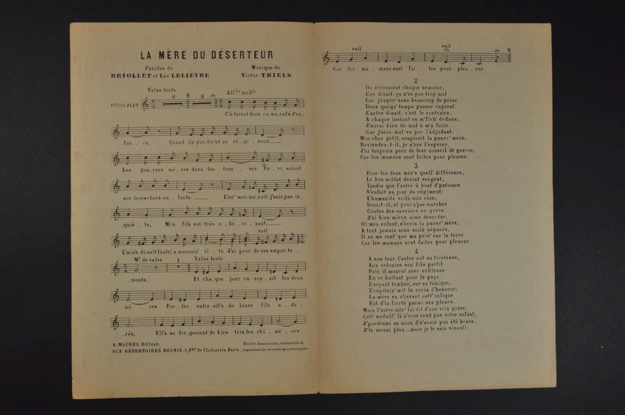 chanson, petit format, partition de musique, La mère du déserteur