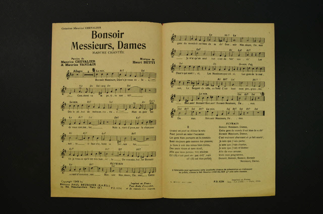 chanson, petit format, partition de musique, Bonsoir Messieurs Dames !