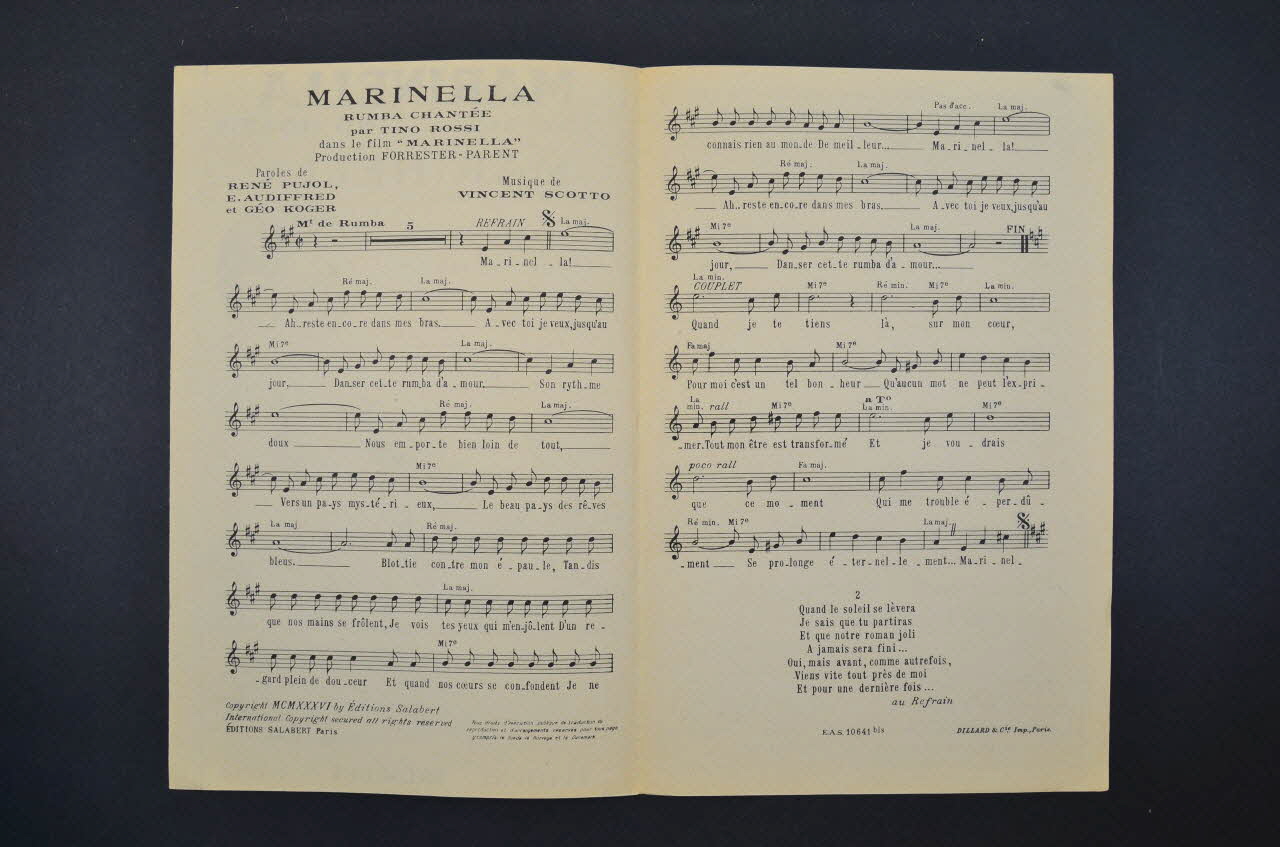 Au dos, le portrait photographique de Tino Rossi et liste d'autres partitions publiées par l'éditeur.