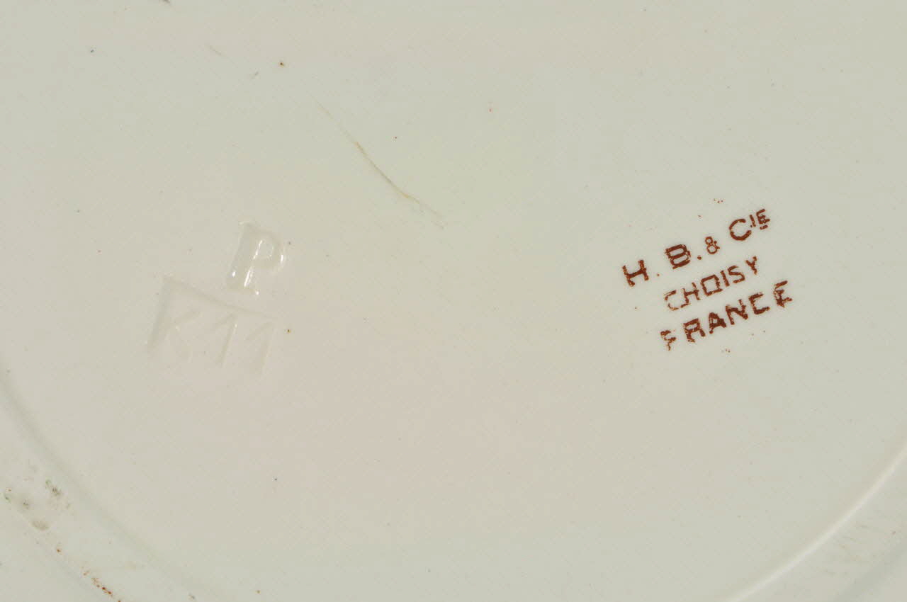 - faïence : moulé, émaillé-glacuré transparent, poinçonné-estampillé, imprimé