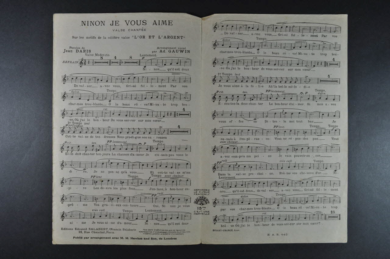 chanson, partition de musique, petit format, Ninon, je vous aime