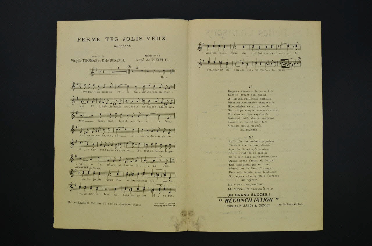 chanson, partition de musique, petit format, Ferme tes jolis yeux