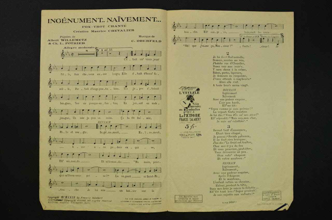 chanson, partition de musique, petit format, Ingénument... Naïvement