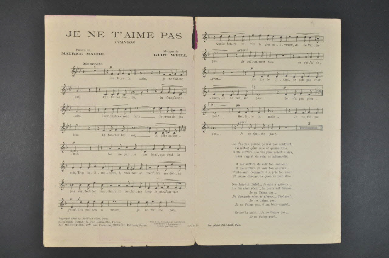 chanson, partition de musique, petit format, Je ne t'aime pas