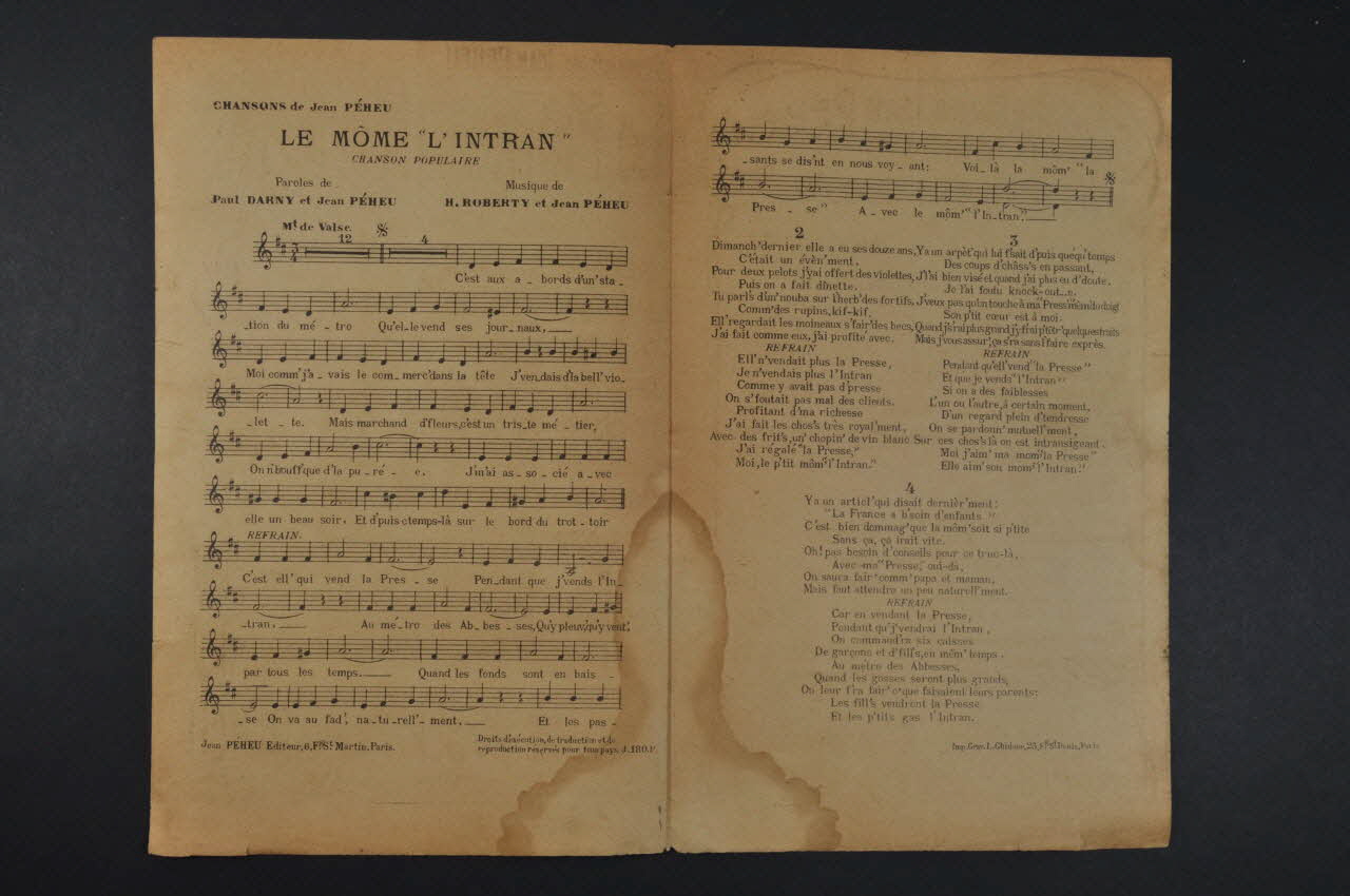 partition de musique, chanson, petit format, le môme "l'Intran"