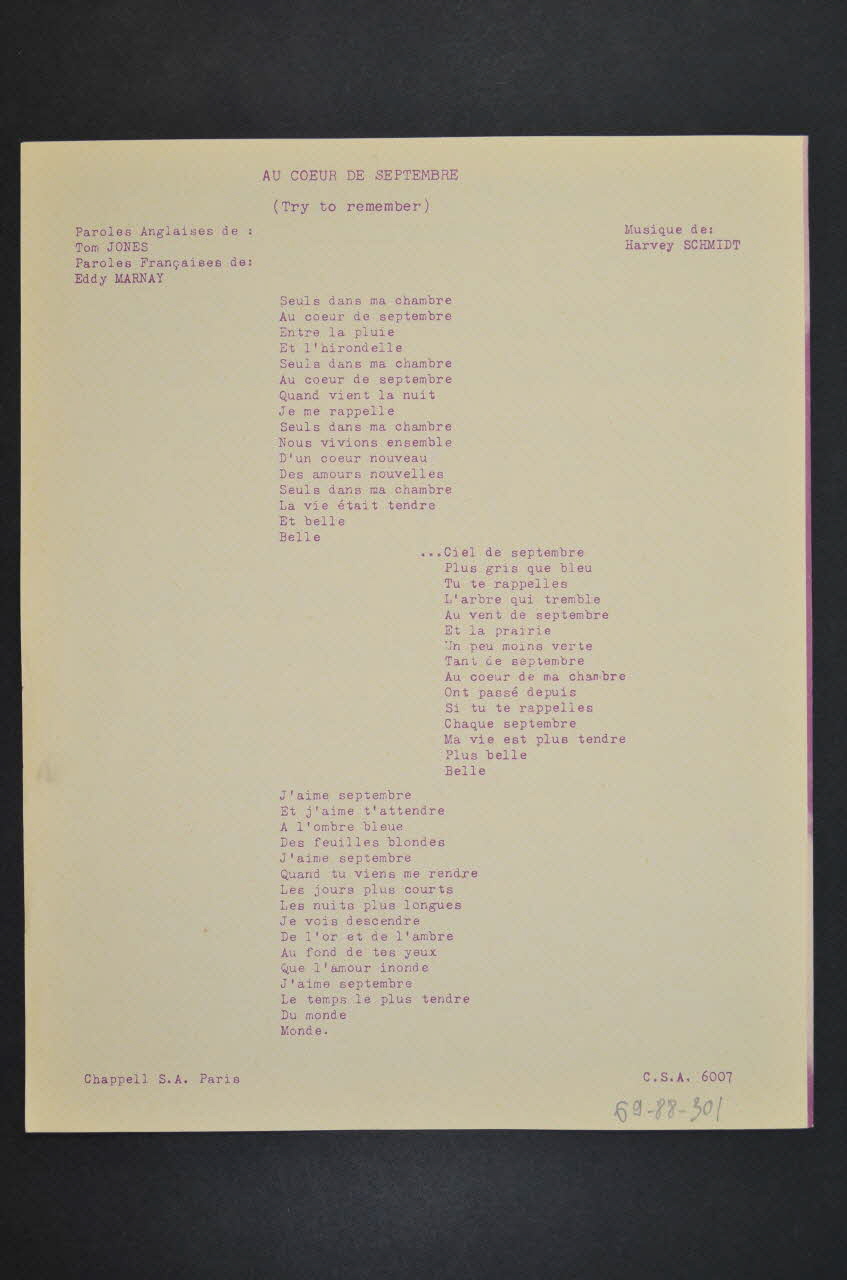 Des inscriptions renseignent le titre, les auteurs, les exécutants et l'éditeur. A l'intérieur, partition et paroles de la chanson. Au dos, les paroles.Matériaux et techniques