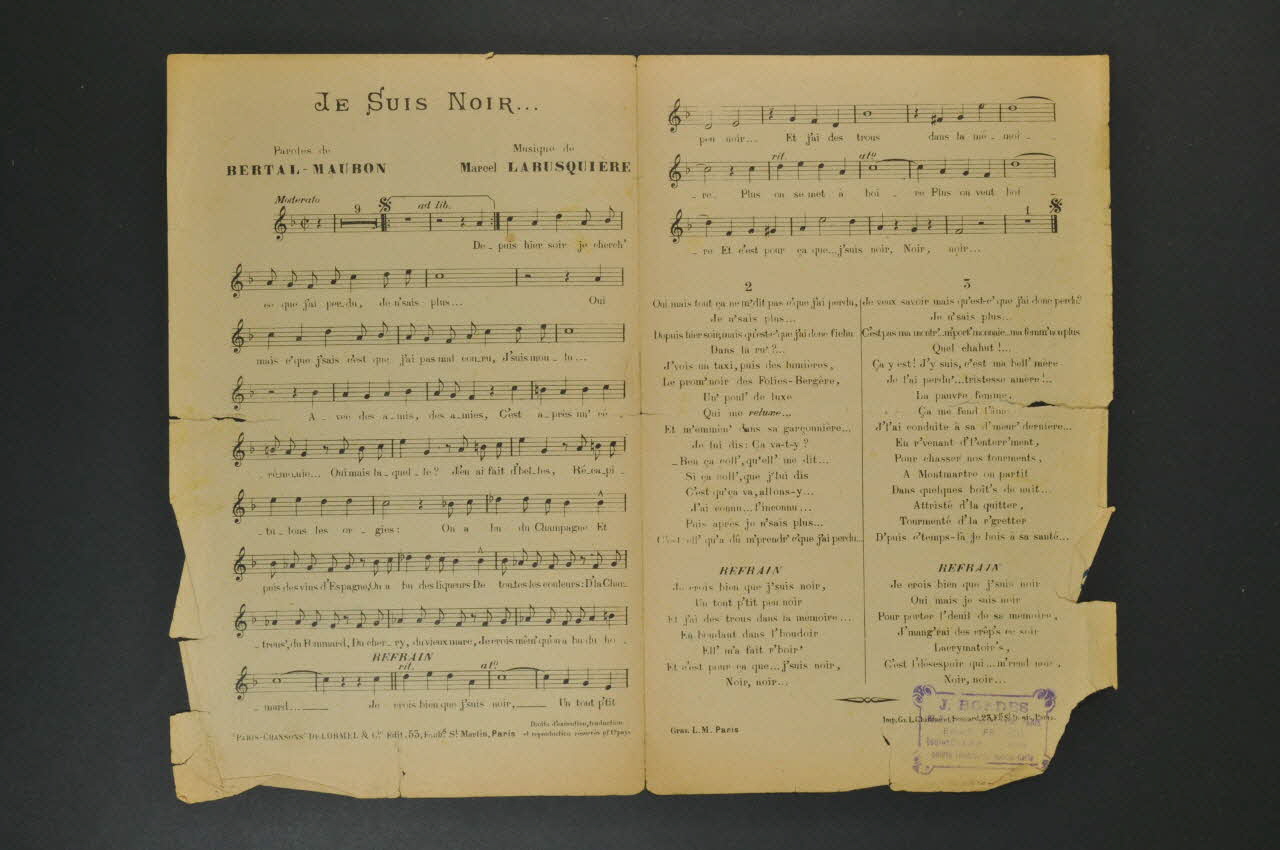 chanson, partition de musique, petit format, Je suis Noir...