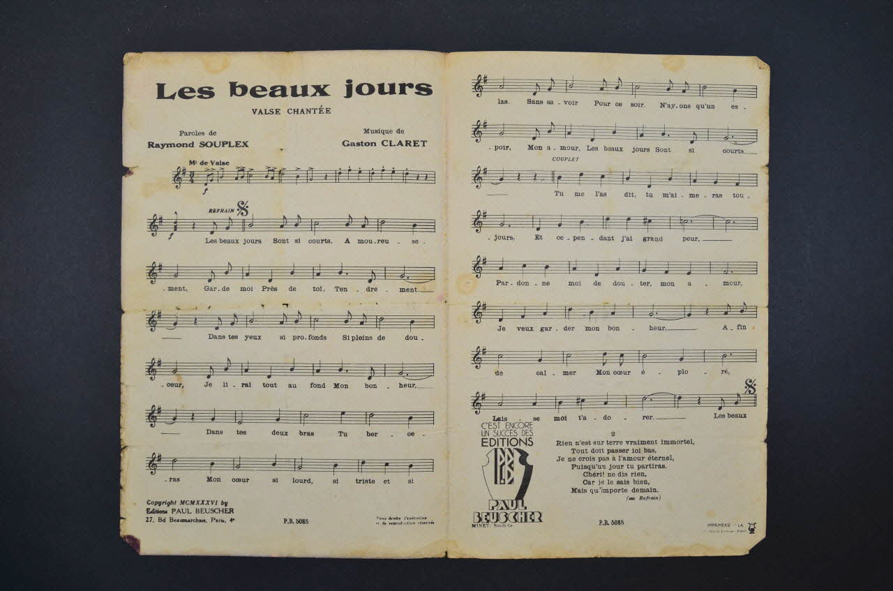chanson, partition de musique, petit format, Les beaux jours