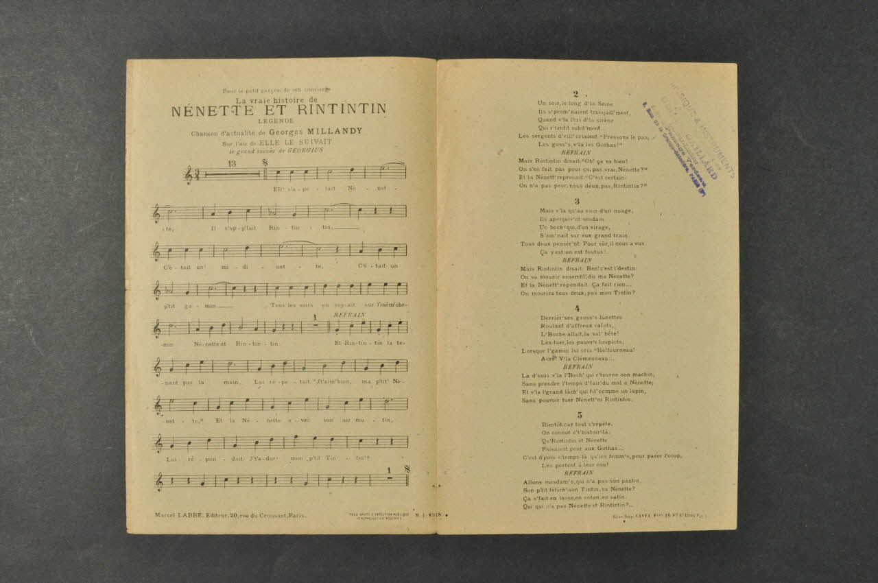 chanson, partition de musique, petit format, La vraie histoire de Nénette et Rintintin