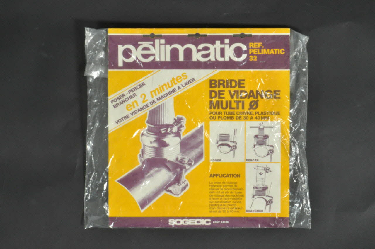 Le carton porte des inscriptions ainsi qu'un mode d'emploi en face avant. Le fond est jaune et les dessins sont bordeaux. Un tuyau est représenté durant les différentes phases de sa pose.
