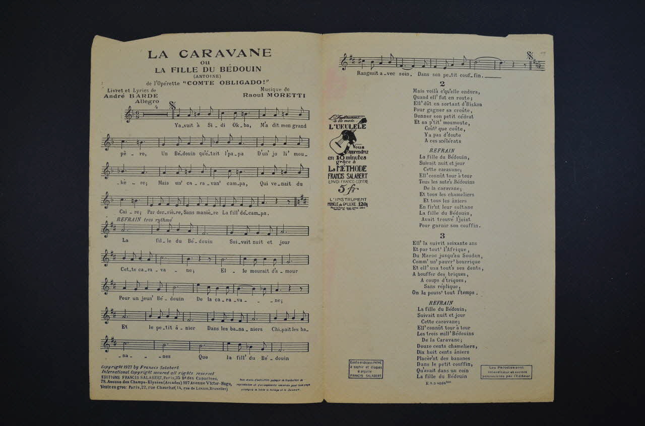 chanson, petit format, partition de musique, La Caravane (ou la Fille du bédouin), Comte obligado
