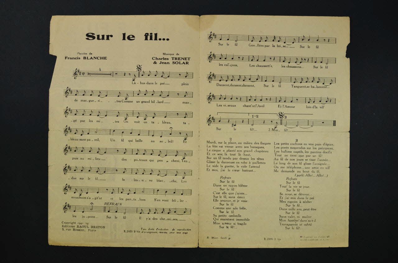 chanson, petit format, partition de musique, Sur le fil...