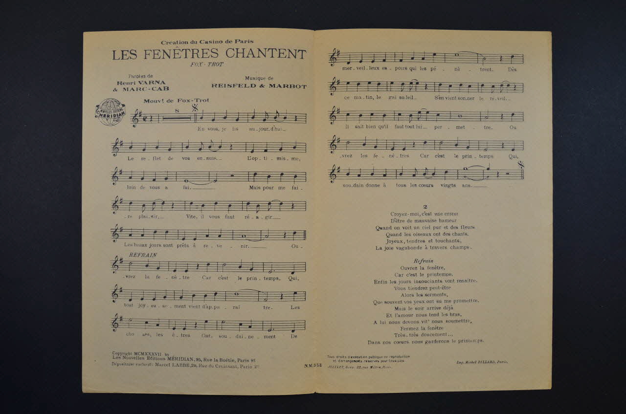 chanson, petit format, partition de musique, Les fenêtres chantent