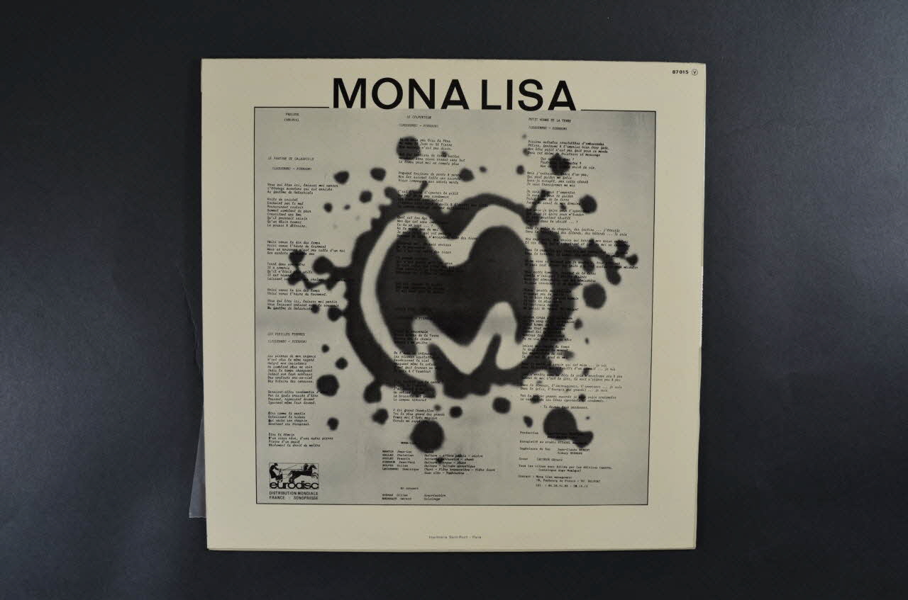.2 : Pochette en papier cartonné, de forme carrée, pliée et collée. Elle présente une photographie noir et blanc des visages du groupe superposés avec des têtes de singes.Matériaux et techniques