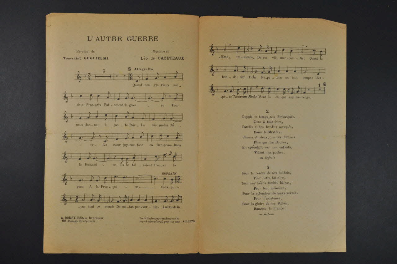 chanson, partition de musique, petit format, L'autre guerre 1919