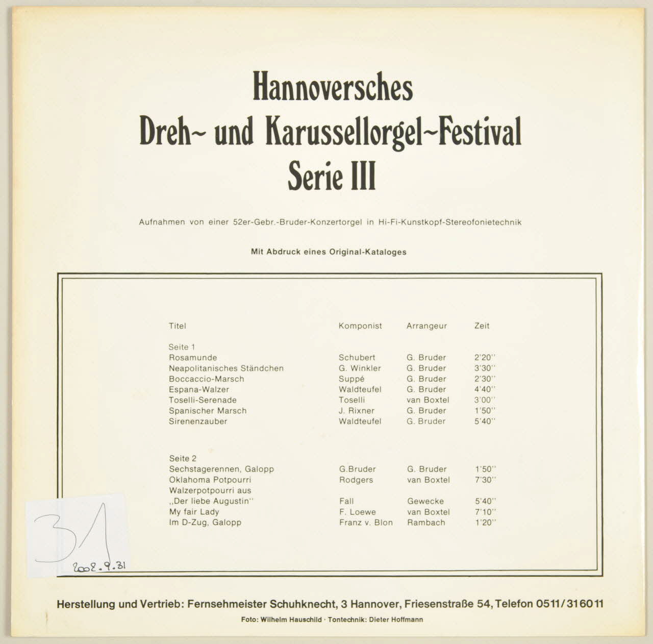 - Titre : Hannoversches Dreh und Karussellorgel-Frestival, série III