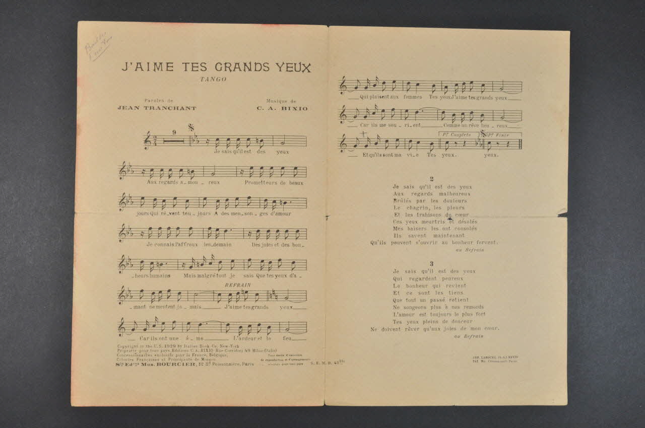 chanson, petit format, partition de musique, J'aime tes grands yeux