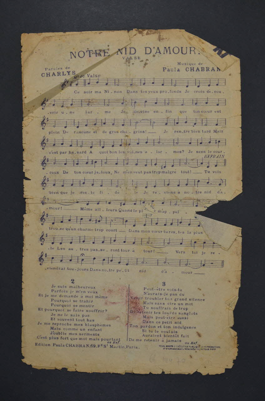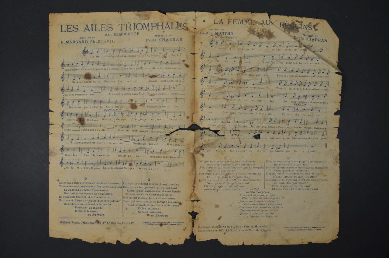La première page présente la photographie de Bérard. Les inscriptions précisent le titre de la chanson, l'auteur et l'éditeur. A l'intérieur se trouvent la partition et les paroles de la chanson. Au dos se trouve une liste des morceaux disponibles chez le même éditeur.Décor
