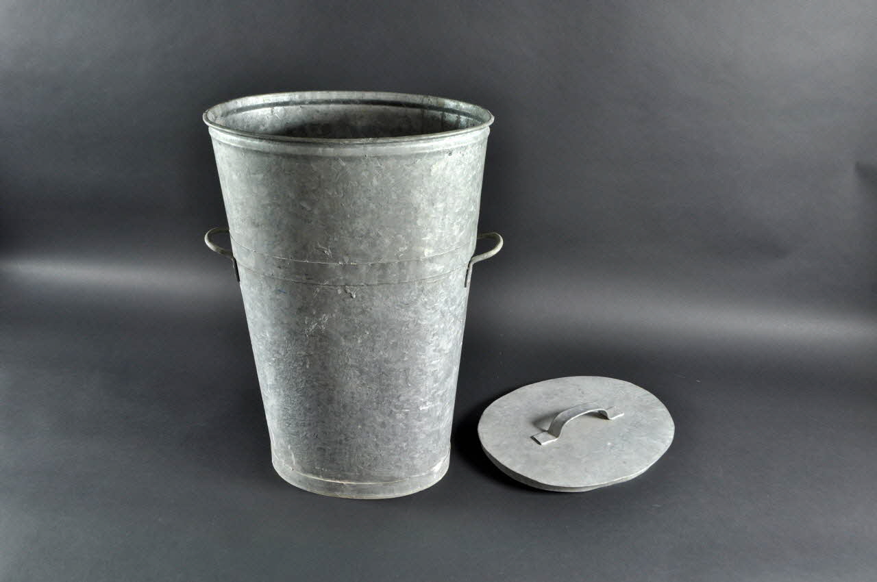 Haut cylindre de zinc, creux, terminé par un disque aplati. Creux, celui-ci se compose de deux disques soudés l'un à l'autre par quatre points.