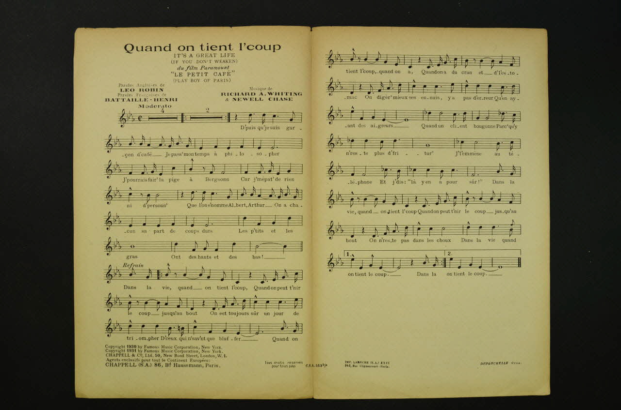 chanson, petit format, partition de musique, Quand on tient l'coup, Le petit café