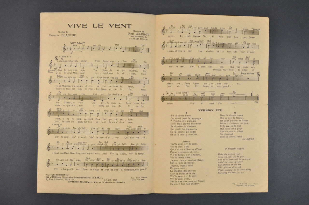 La première page présente la photographie des chanteurs. Les inscriptions précisent le titre de la chanson, l'auteur et l'éditeur. A l'intérieur se trouvent la partition et les paroles de la chanson. Au dos, une liste de morceaux disponibles chez le même éditeur.Décor