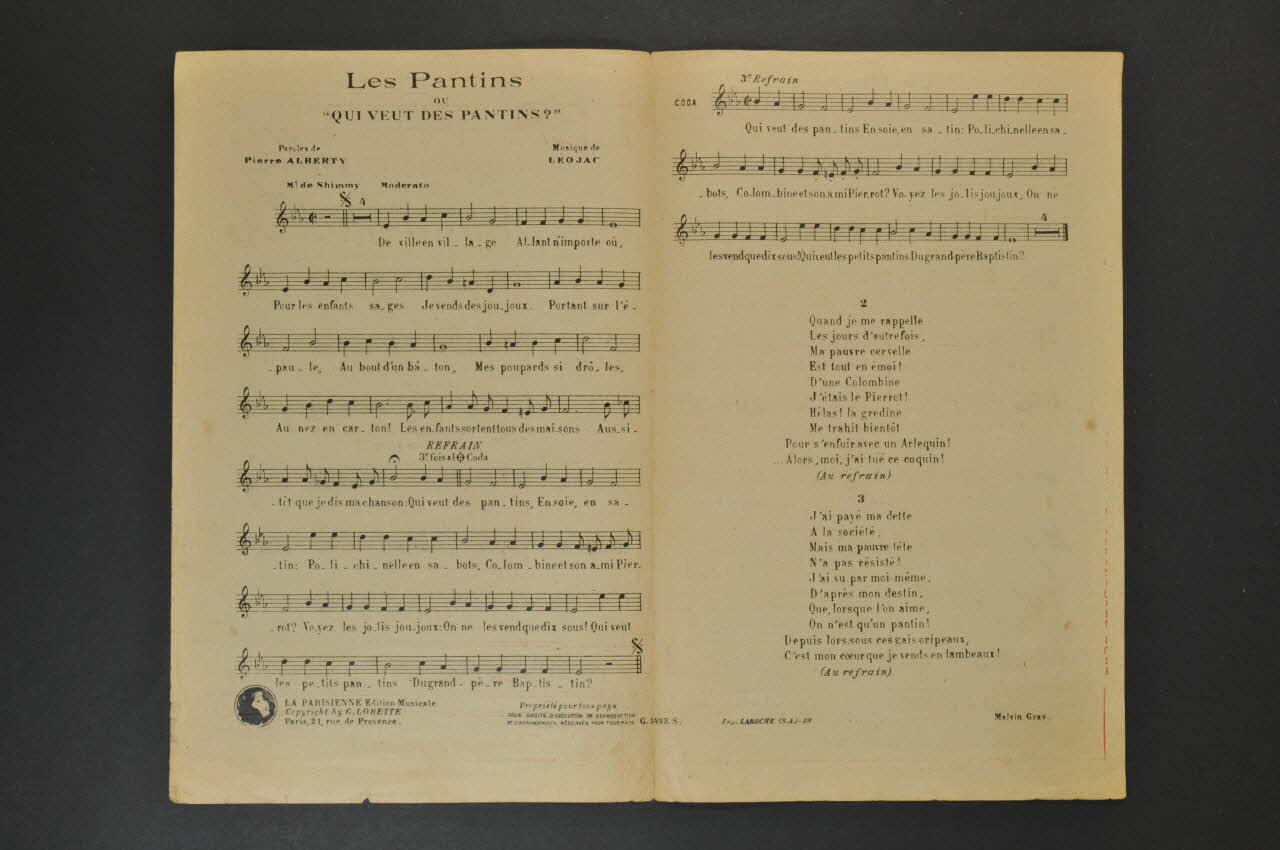 chanson, partition de musique, petit format, Les pantins