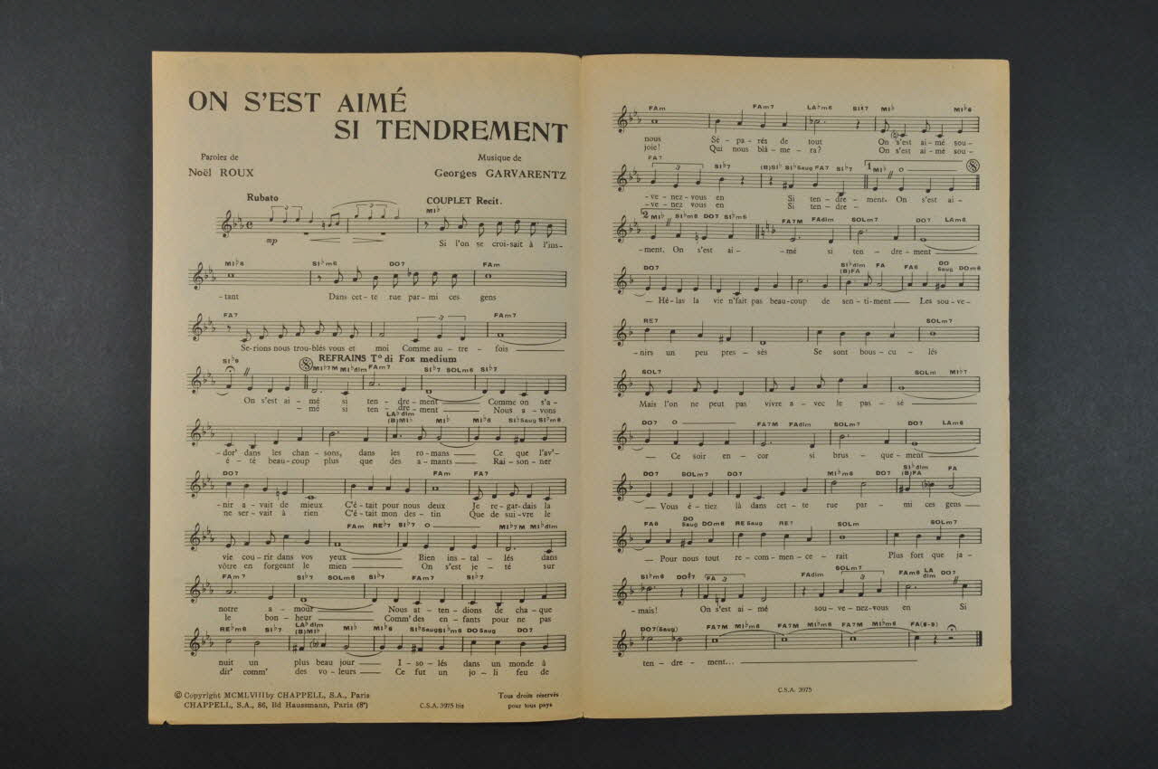partition de musique, chanson, petit format, On s'est aimé si tendrement