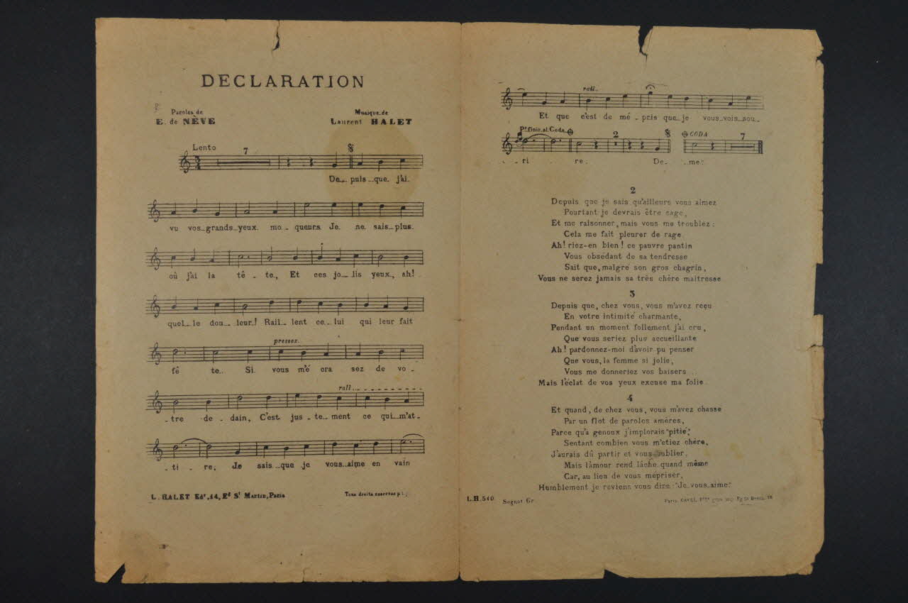 chanson, partition de musique, petit format, Déclaration