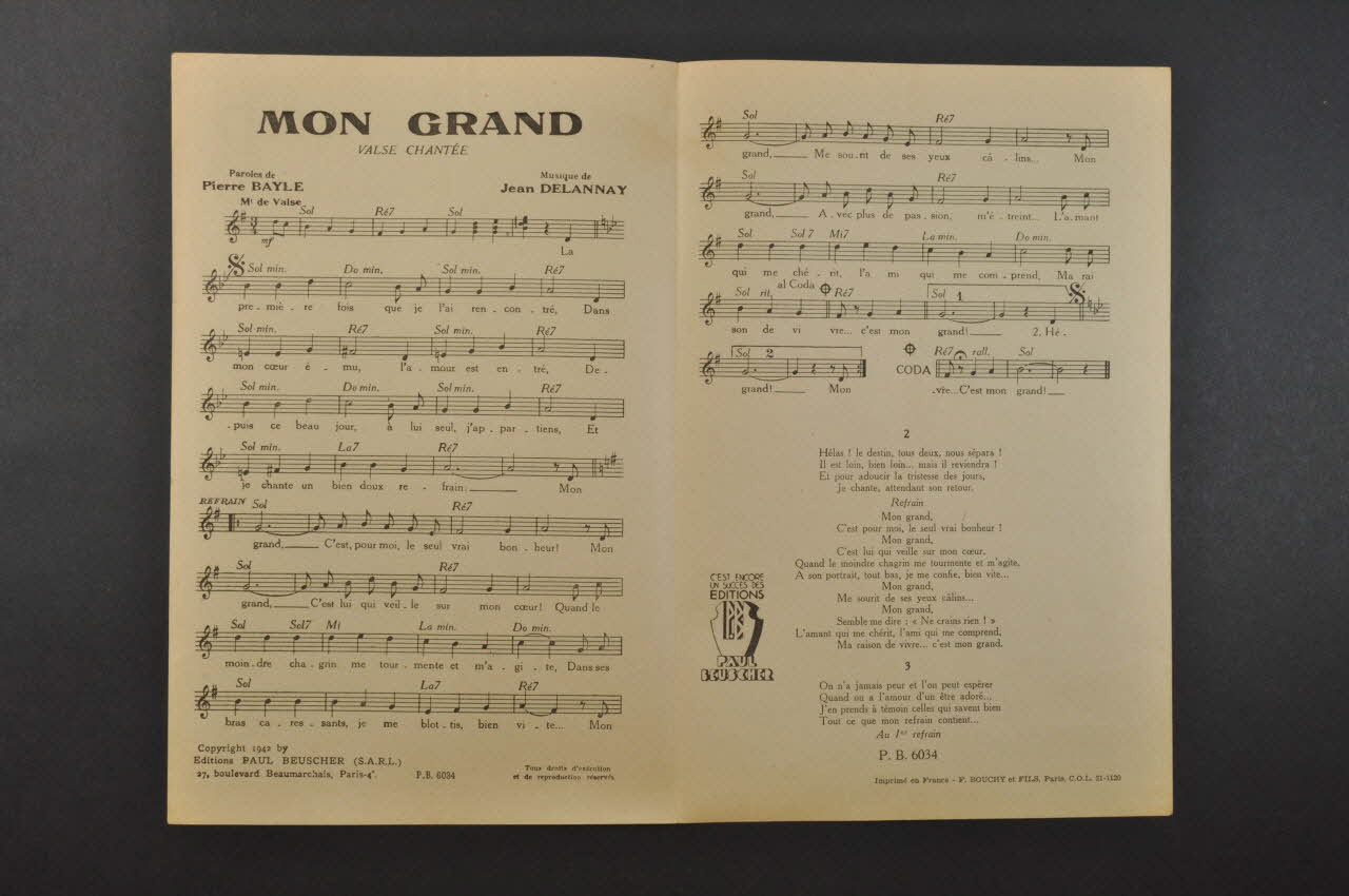 chanson, partition de musique, petit format, Mon grand